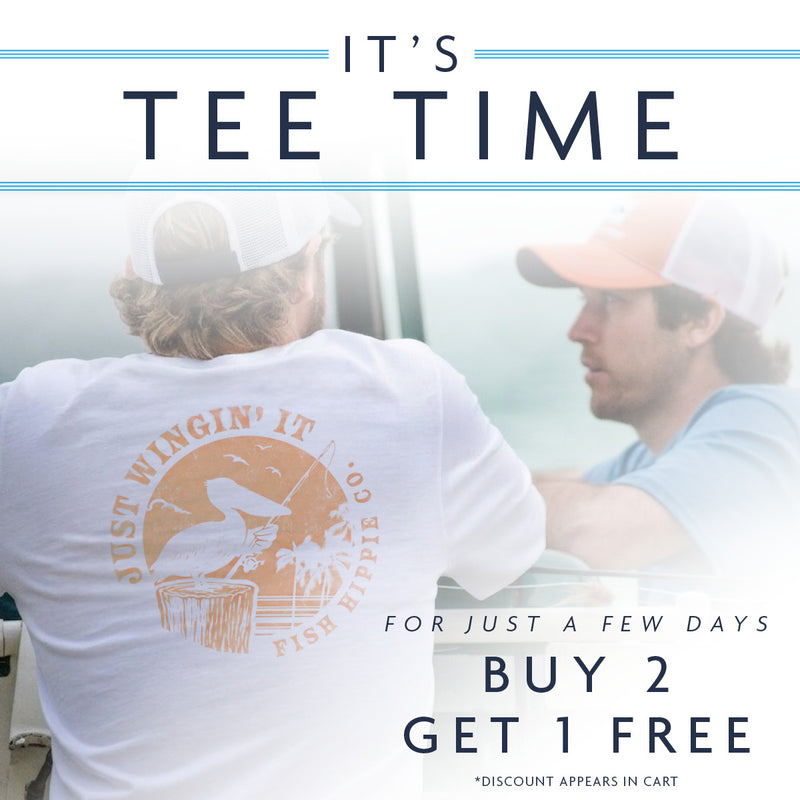 Pulled from the vault and inspired by life on the water, the Fish Hippie Graphic Collection brings together timeless graphics, soft 100% cotton comfort, and stories rooted in real moments. From the return of the Original Tarpon to the new Wetlands Navigator and Banks Camo inspired by our local Outer Banks, these collections are made for everyday wear and all the good days ahead.